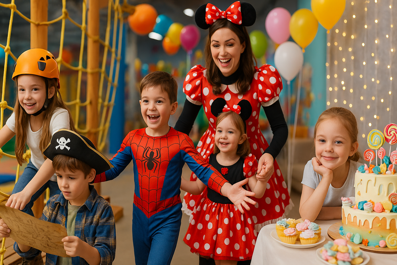 Мы не ограничиваемся «тортом и шариками» — мы создаём праздник полностью: площадка с развлечениями, аниматоры, продуманный сценарий, реквизит, конкурсы, музыка и море эмоций.