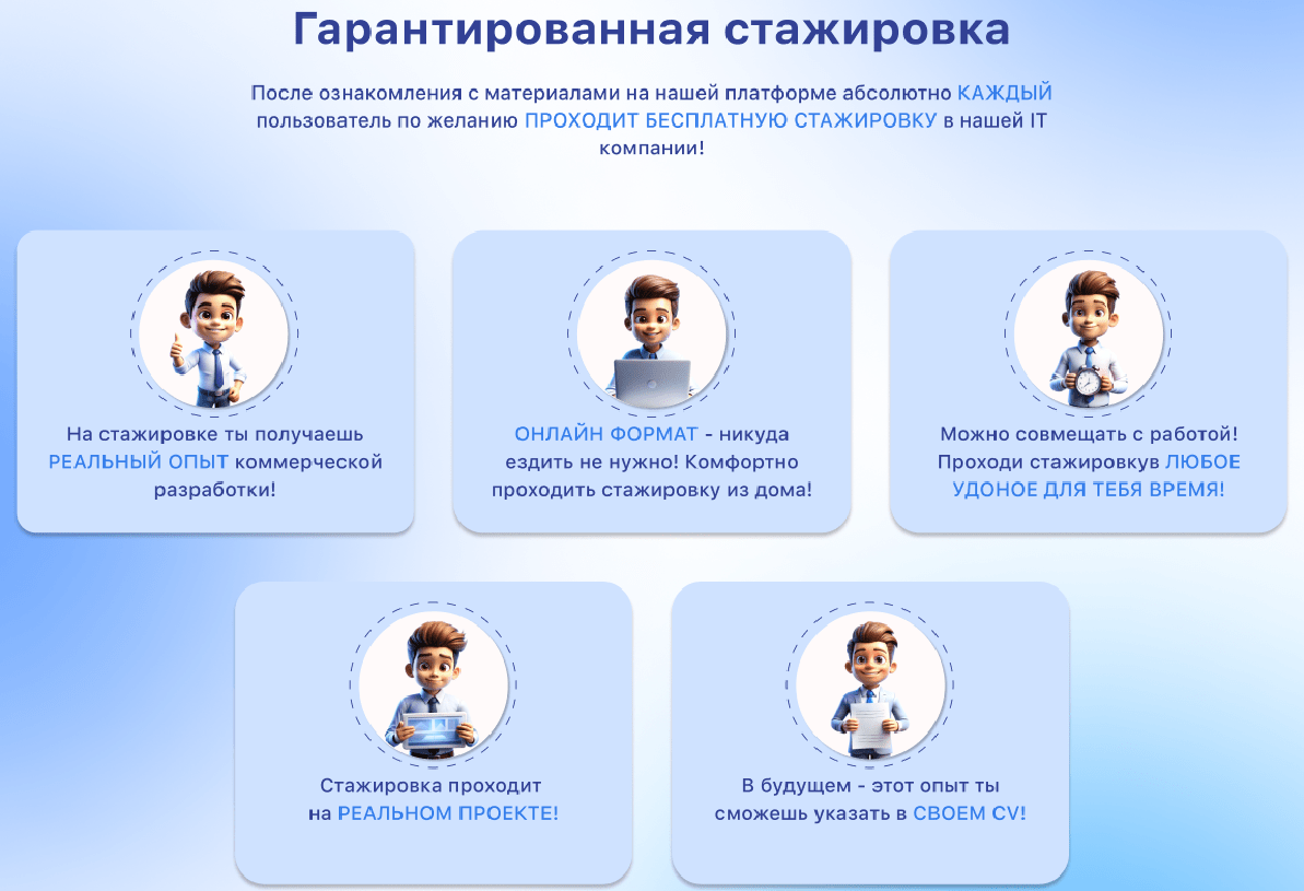 - Реальные проекты : Участие в проектах, имеющих важное значение, повышаю профессиональные навыки и добавляю вес в резюме.